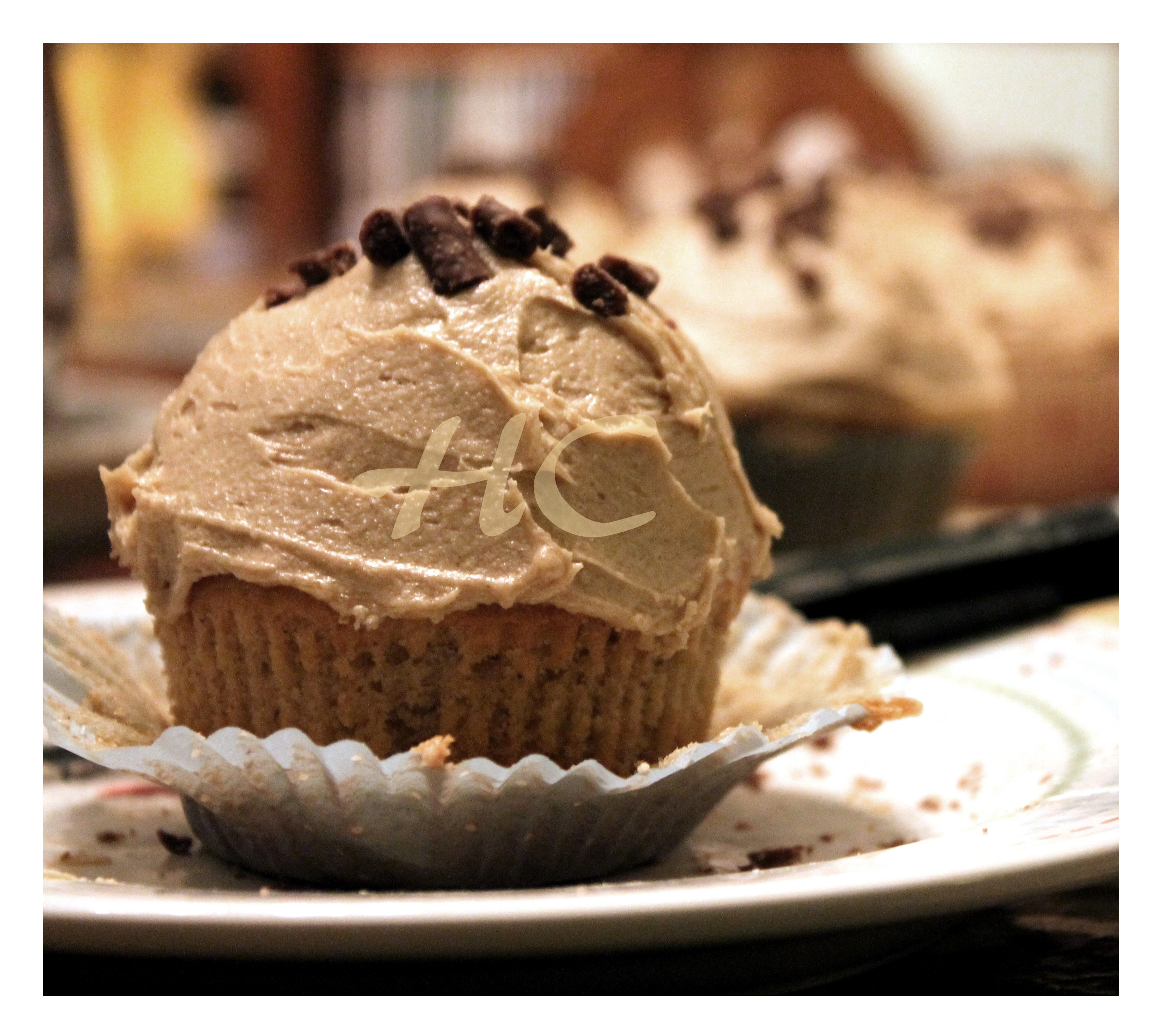 ♥ Then smother in the chai buttercream using a knife or you can pipe if you’d like. I topped mine with honeycomb chocolate pieces but you can decide for yourself.