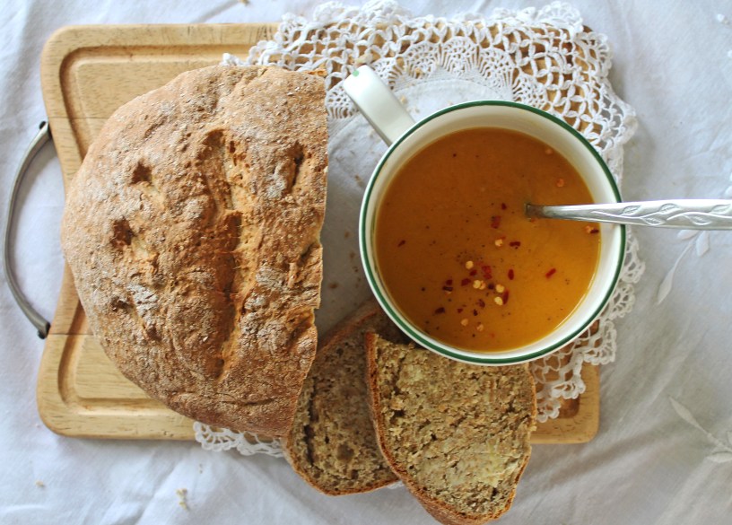 6) Serve with bread of your choice – a crusty loaf works scrumptiously though! I also added a grind of black pepper and a small sprinkle of chilli flakes to the top.